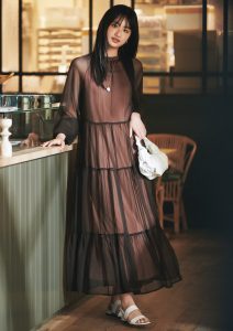 • シフォンワンピ×白小物で、ブラウンを清涼感たっぷりに♡【今日のコーデ】