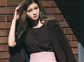 白黒ではなくあえてのブラウンでボーダーが女らしく、モダンに