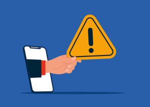 • Hand,Businessman,With,Smartphone,Holding,With,Exclamation,Attention,Signs.,Solving
