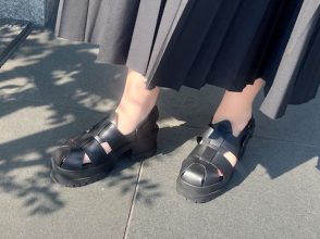 ■ウエストマークと細ヒールの組み合わせがスタイルアップを確約