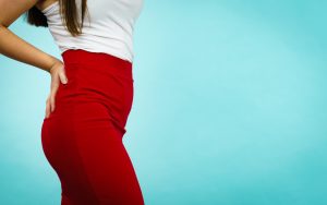 • Unrecognizable,Woman,With,Curvy,Body,Having,Fashionable,Outfit,,Red,Skirt.