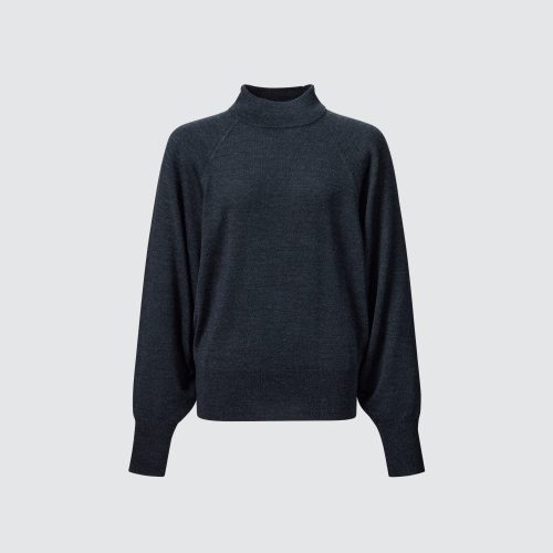 袖のリブやモックネックがアクセントになった「メリノブレンドボリュームスリーブセーター」。¥3,000台で購入できる高コスパぶりはもちろん、ハイゲージで着心地もバッチリ。ウールとアクリルのブレンド素材で毛玉になりにくい素材なのもうれしい! オフホワイト・ブラック・ブルーの3色展開でオンオフ使える名品です。