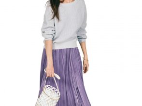 カットソー¥8,800(Stylevoice for xxx)、パンツ¥20,900(LOUNIE/ルーニィ)、手に持ったジャケット¥28.600(ラ トータリテ 有楽町マルイ店<ラ トータリテ>)、バッグ¥16,390(ノーブル 有楽町マルイ店<TUO>)、ベルト¥14,300(シップス<LEFIJE>)、イヤリング¥3,300(アネモネ/サンポークリエイト)、リング[左手]¥61,600(ココシュニック)、リング[右手/ダブルフィンガー]¥23,100(ステラハリウッド)