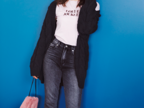ベーシックなアイテム合わせでも、ニュアンスカラー配色にするだけでこんなにも新鮮♪ ファーバッグやサングラスなど存在感のある小物をちりばめて、こなれ感をもうひと盛り!