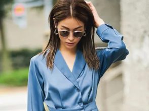 白シャツ×バルキーセーターにデニムを合わせたシンプルコーデも、今年らしいブルーグレーコートをさらっとはおればオトナきれいに仕上がる! マニッシュなロングコートは、ダークカラーでまとめないのがコツ。ざっくりとしたネックラインで、小顔効果も狙って。