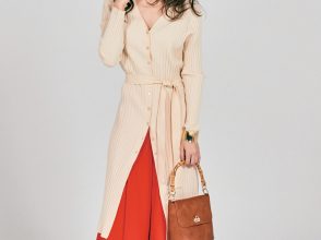 ジレ¥16,940(SNIDEL ルミネ新宿2店<SNIDEL>)、ワンピース¥16,940(LILY BROWN ルミネエスト新宿店<リリーブラウン>)、バッグ¥11,000(キャセリーニ<ル・ベルニ>)、靴¥12,980(RANDA)、イヤリング¥9,900(ココシュニック新宿タカシマヤ店<マージョリー・ベア>)