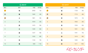 【2023赤ちゃんの名前ランキング】よく使われた漢字1位は「翔」。多い名前1位は?