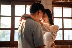 • Asian,Young,Man,And,Woman,Hugging,Each,Other,In,Living