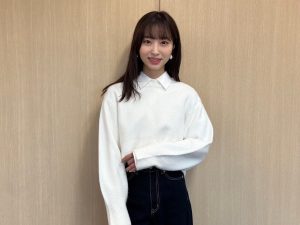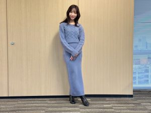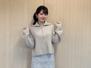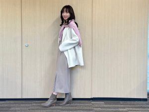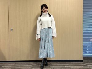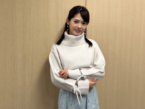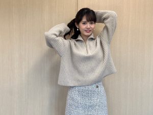 【写真10枚】お天気キャスター・林佑香さんのケーブルニットで柔らかく上品な淡色コーデ【10月23日分】