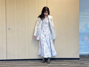【写真7枚】アンサンブルのワンピースにユニクロのジャケットをON!『めざましテレビ』お天気キャスター・林佑香さんの今日のコーデ【10月24日分】