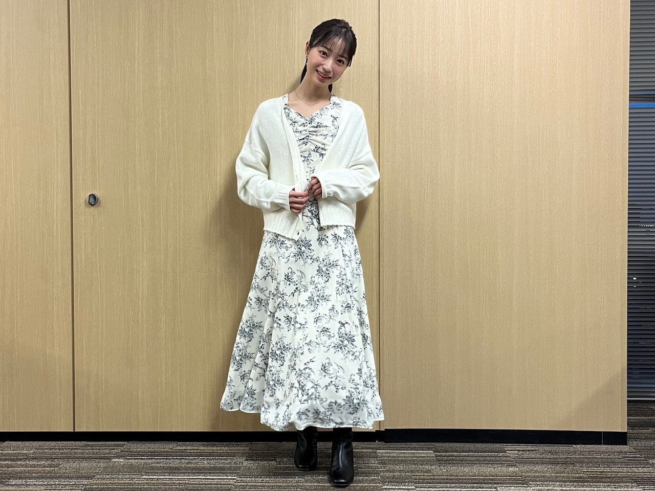 引き続き人気のショート丈で、今っぽく仕上げたゆるカーディガン。上半身がすっきり見える効果も期待できて一石二鳥♪ フェミニンな花柄ワンピに合わせると、トレンド感のあるきれいめなコーディネートが完成。