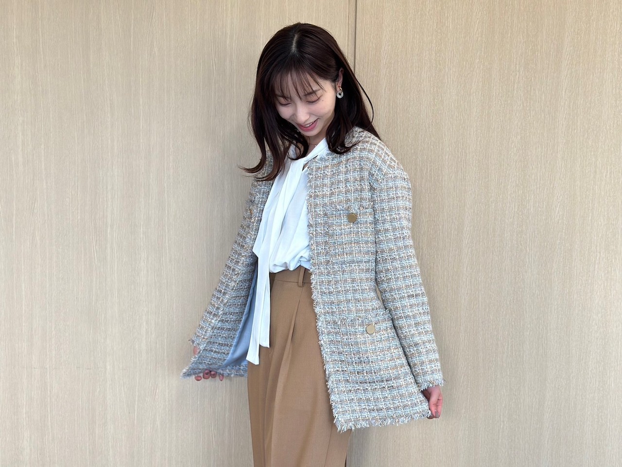 ■10/19(木)/ツイードジャケット×キャメルワイドパンツ