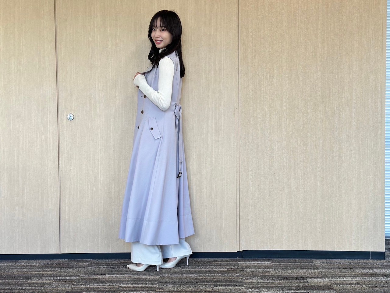 上品さと今っぽさを両立したラベンダーのジレ。ホワイトコーデにプラスすると旬なきれいめスタイルが完成します。ロング丈のジレが縦のラインを強調し、スタイルアップ効果も叶えてくれる!
