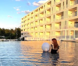 カーテンを開けると、とっても広いテラスが! 目の前に海と夜景が広がる絶景に、思わず「うわあ、きれい!」と声が出てしまったほど。テラスのソファで夜な夜なチルしたいなあ、と思いつつ、気づいたらやわらかいお布団に包まれて爆睡してました。