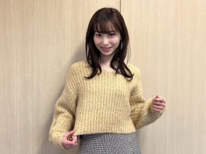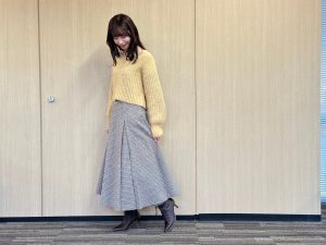 【写真10枚】お天気キャスター・林佑香さんのケーブルニットで柔らかく上品な淡色コーデ【10月23日分】