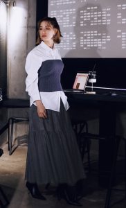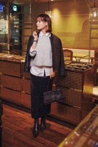 【写真9枚】盛れるグレーニットにプレッピー要素を足してみたら…? 人気お天気キャスター・林佑香さんのコーデ【11月13日分】