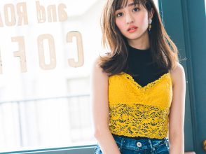 キャミソール¥6,490(mystic 新宿店<mystic>)、カーディガン¥17,600(CHAROL)、カットソー¥16,500・パンツ¥30,800(カイタックインターナショナル<ヤヌーク>)、バッグ¥74,800(マルティニーク ルミネ横浜<ZANCHETTI>)、靴¥10,780(ル タロン 有楽町マルイ店<ル タロン>)、ネックレス¥24,000(ジェンマ アルス<ALUS>)