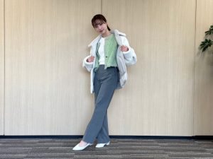 グレーでまとめたおしゃれ上級テク♡めざましお天気キャスター・林佑香さんの毎日コーデ【10月14日分】