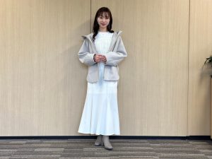 【写真9枚】盛れるグレーニットにプレッピー要素を足してみたら…? 人気お天気キャスター・林佑香さんのコーデ【11月13日分】