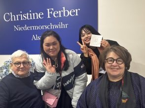 『猫塾』と『しんぼる』が合体したお笑いカルテット。現在、酒寄希望さん(写真左)が育休中のため、きりやはるかさん(中央左)、あんりさん(中央右)、田辺智加さん(右)のトリオで活動中。