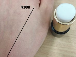 全色をまんべんなくブレンドして塗布。今回お試しする、ライター齋藤のパーソナルカラーは1stイエベ春、2ndブルベ夏。明度高めのニュートラルカラーがマッチ。