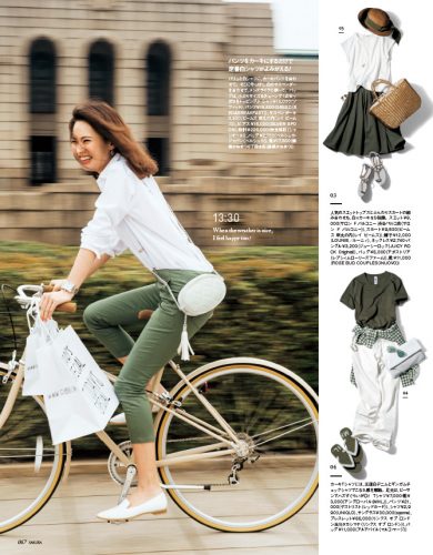 ヘルシーな女らしさのあるカーキは、夏のさわやかな“白”と、相性抜群! スカートやニットなど、女性らしいアイテムで着こなす……というのが主流です。