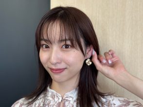 ゴールドのピアスでレディな華やかさもバッチリ。
