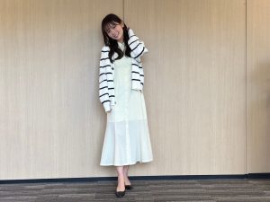 【写真7枚】アンサンブルのワンピースにユニクロのジャケットをON!『めざましテレビ』お天気キャスター・林佑香さんの今日のコーデ【10月24日分】