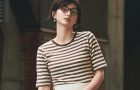 スカート¥4,290(BONJOUR SAGAN)、シャツ¥15,400(エメル リファインズ オンラインストア<エメル リファインズ>)、カットソー¥15,400(トラディショナル ウェザーウェア ルミネ有楽町店<トラディショナル ウェザーウェア>)、バッグ¥47,300(ヴァジックジャパン<VASIC>)、靴¥14,850(ダイアナ 銀座本店<ダイアナ>)、イヤリング¥3,300(アネモネ/サンポークリエイト)