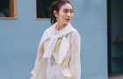 ドライな質感のジャケットで華やかレースをリラクシーかつ都会的に