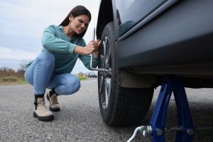 • Road,Assistance,Worker,Helping,Young,Woman,To,Change,A,Car
