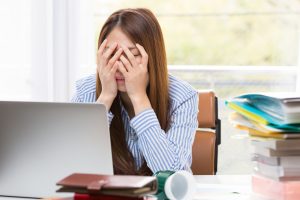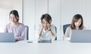 Asian business woman employee stressed at office place , angry boss blaming her - Business concept