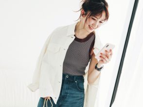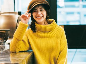 (左下:安未)ニット¥10,450(SNIDEL ルミネ新宿2店<SNIDEL>)、スカート¥50,600(フィルム<DOUBLE STANDARD CLOTHING>)、カチューシャ¥7,700(Chapeau d’ O 東急プラザ銀座店<Chapeau d’ O>)、ピアス¥14,300(ズットホリック<バルブス>)、リング¥35,200(e.m. 青山店<e.m.>)