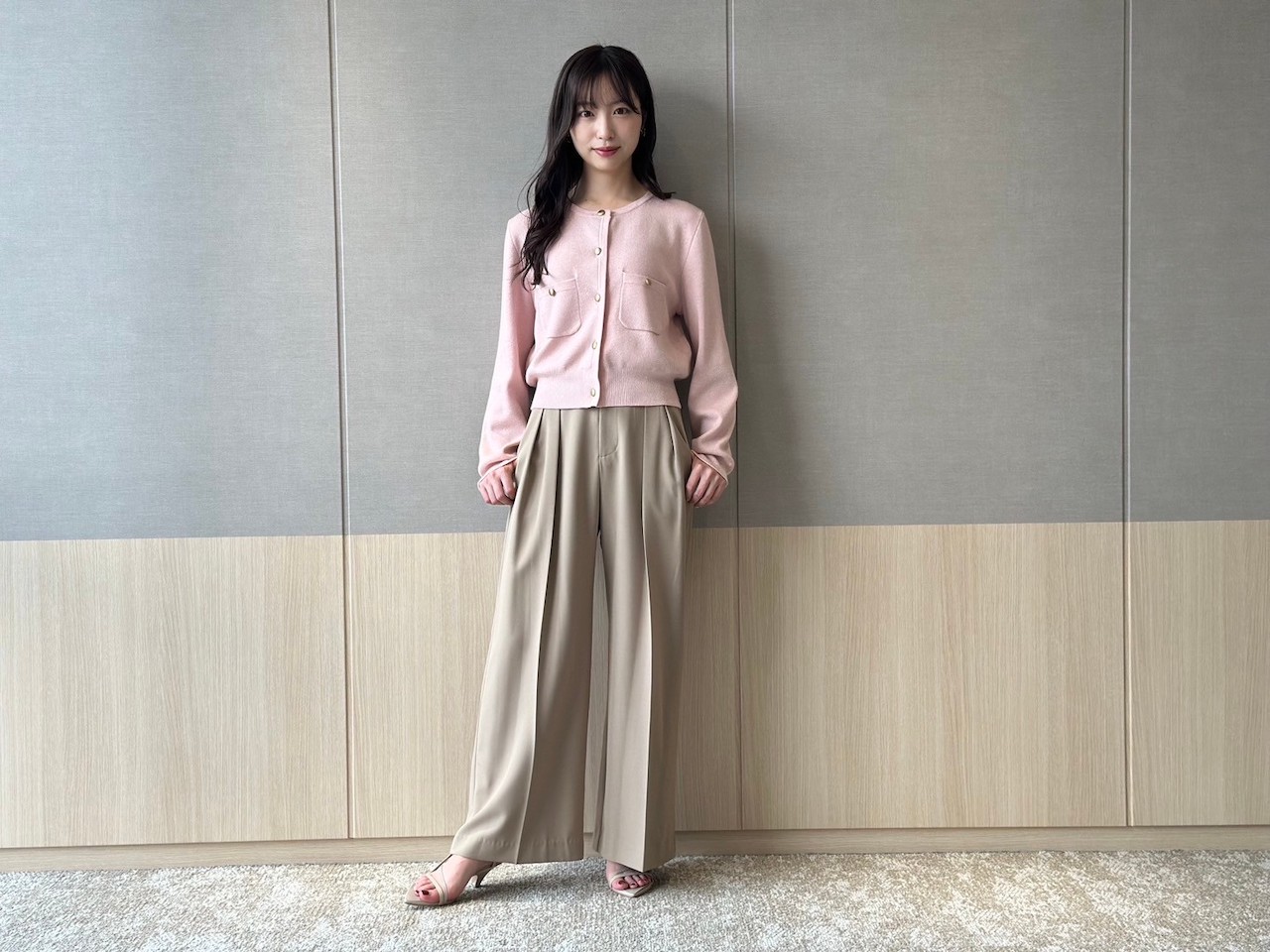 ■6/26(水)/ピンクカーディガン×ベージュパンツ