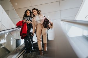 • Capture,Of,Two,Fashionable,Friends,Riding,An,Escalator,Together.,They