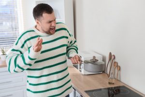 • Young,Man,Burned,His,Hand,On,Hot,Cooking,Pot,In
