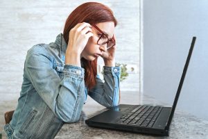 • Stressed,Frustrated,Woman,Feeling,Upset,About,Online,Work,Problem,,Sad