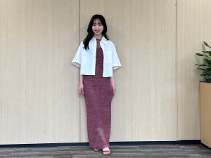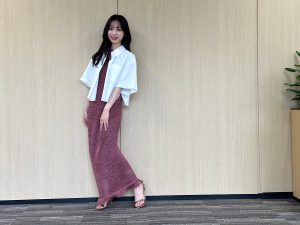 【写真9枚】Iラインワンピでボディラインを美しく♪『めざましテレビ』お天気キャスター林佑香さんの毎日コーデ【7月12日分】