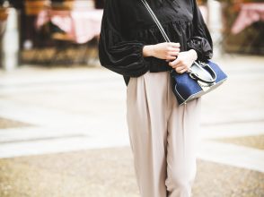 ぱっと着るだけで洒落感が漂うオールインワンを味方に。アクセントになった黒ボタンと高い腰位置の切り替えでスタイルアップ効果も狙えちゃう♪ 黒小物で引き締めてイイオンナ的オーラ漂うデートスタイルが完成。