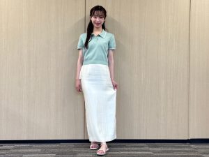 【写真7枚】バックスリットスカートがあざとい♡『めざましテレビ』お天気キャスター林佑香さんの毎日コーデ【7月31日分】
