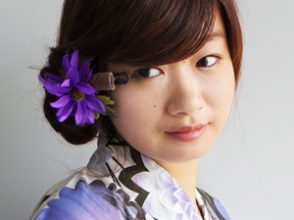 前髪を9:1に分けて、全体をゆるくミックス巻きにしておく。片サイドに髪をひとつにまとめ、襟足に沿うよう低めの位置で、外側にゆるくねじりながら、数か所ピンで留めて固定していきます。最後に毛先をちらして、ラフな印象に。