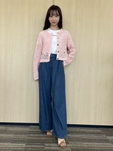 【写真10枚】お天気キャスター・林佑香さんのケーブルニットで柔らかく上品な淡色コーデ【10月23日分】