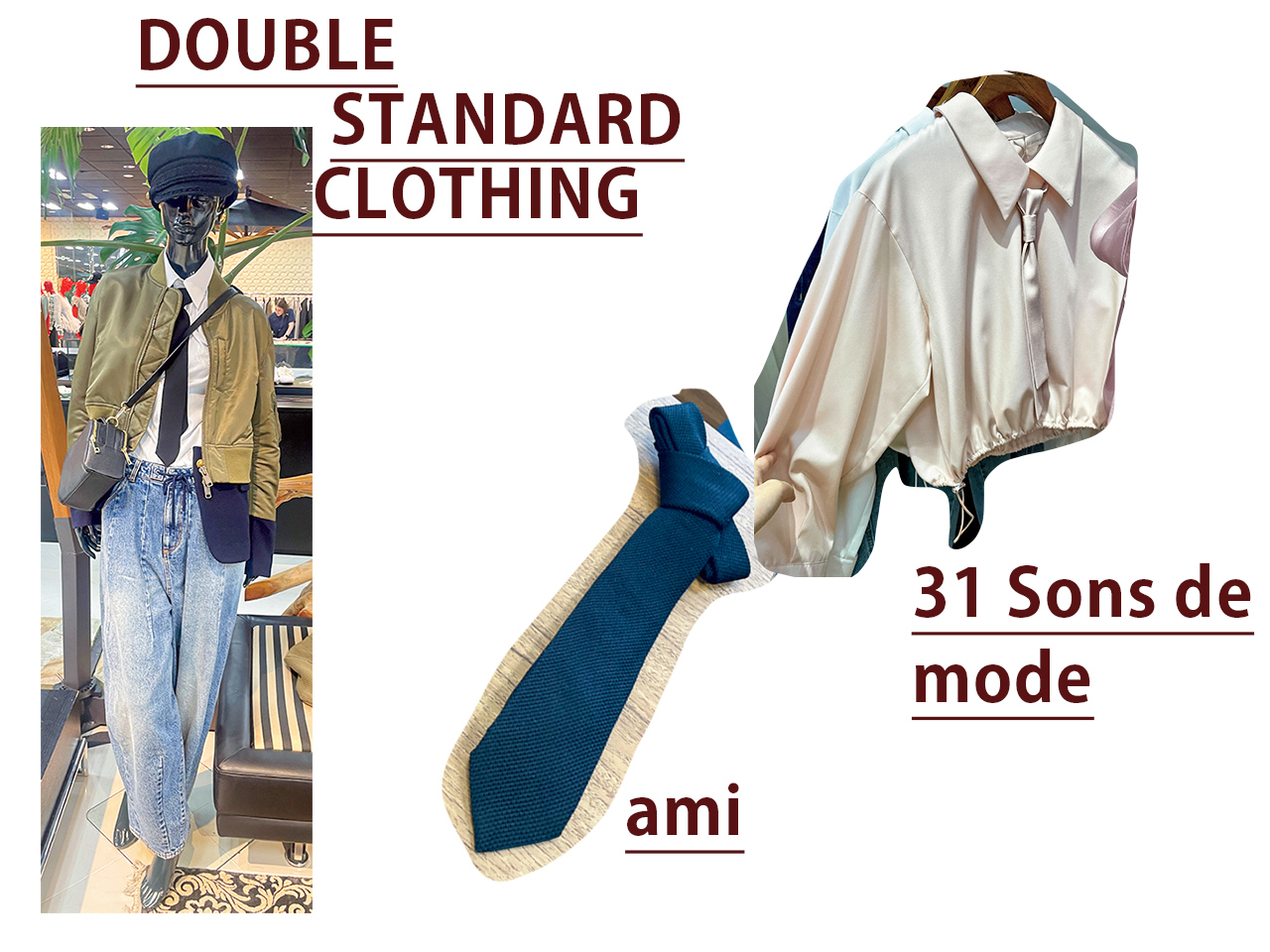 「ストライプ柄で軽やかさを出したネイビーレイヤード。トルソーを見てマネしたいと思いました!」(写真中央/ファッションエディター 佐藤彩花)