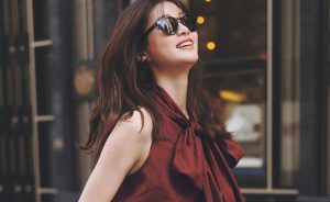 顔周りが華やぐボウタイブラウスでワンツーコーデを更新