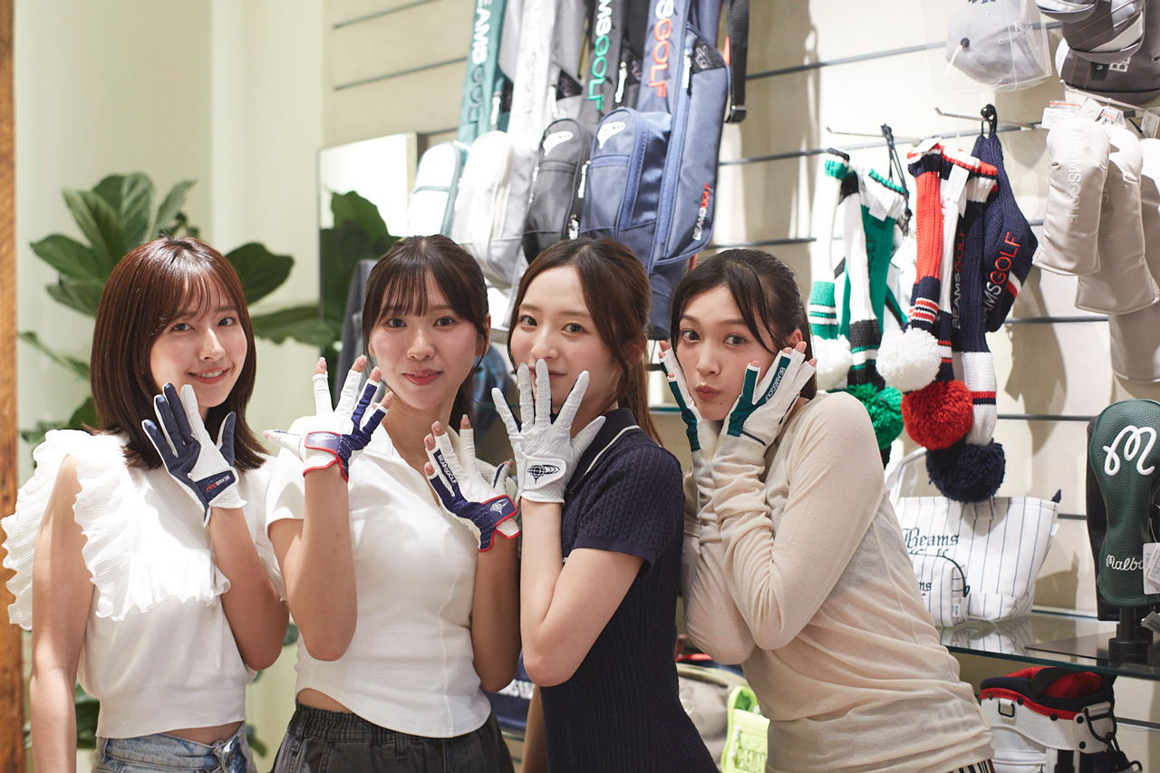 早速、店内をパトロールし、「かわいい〜!」「欲しい〜!」を連発するICONSたち。クラブ以外、ゴルフに必要なものはすべてココで揃うと聞き、早くも脳内に欲しいものをリストアップしているようでしたが、何はともあれ、この日の目的はそう、ゴルフグローブ。