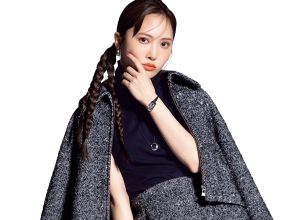 ビッグリボンより華奢リボンがたくさん付いているのが、注目すべき秋ディティール。クルーネックニットは、レイヤードで着こなすのが鉄板の洒落ワザ。フリルスカートとつなぐように黒のシアータートルカットソーをINすると、コーデに奥行きが生まれつつ女っぽい色気も増す。