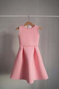 • The,Pink,Dress,Is,Hanging,On,A,Hanger.,Children’s,Clothing.