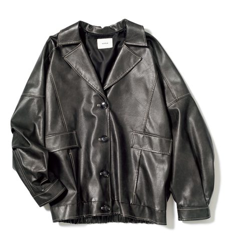 今季は、お尻にかかるくらいゆったりとしたシルエットで、ヴィンテージな雰囲気のエコレザーアウターが豊作。タイトなスカートやレースなどフェミニンなボトムと合わせるのが気分。