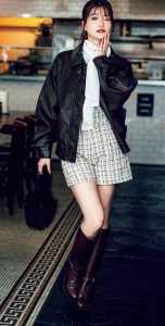 チェック柄のミニボトムから美脚がスラリ♡ お天気キャスター・林佑香さんのグッドガール風コーデ【12月3日分】