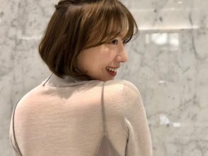 キラキラニットで顔映りもバッチリ!【林さんのニット着用画像8枚】